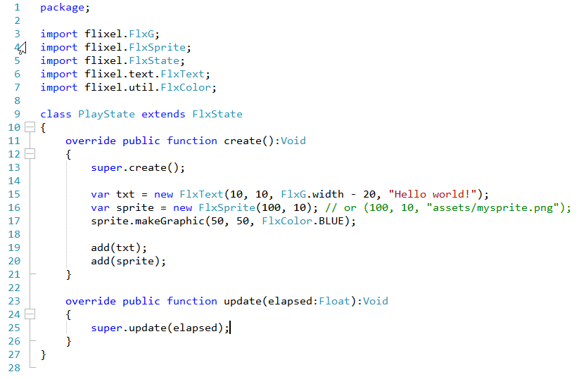var sprite = new FlxSprite(100, 10, "assets/mysprite.png");